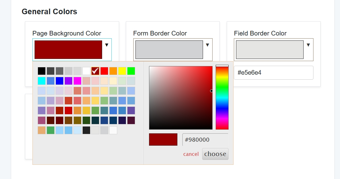 Selecting Colors for your form:
