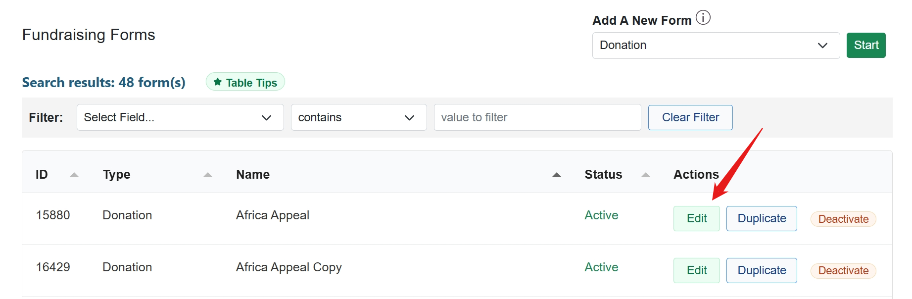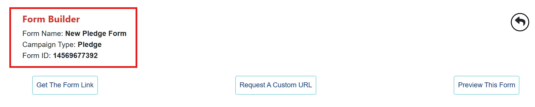 At the top left of the page, you will find the form name, campaign type and ID number. The name may be changed in the Form Basics area.