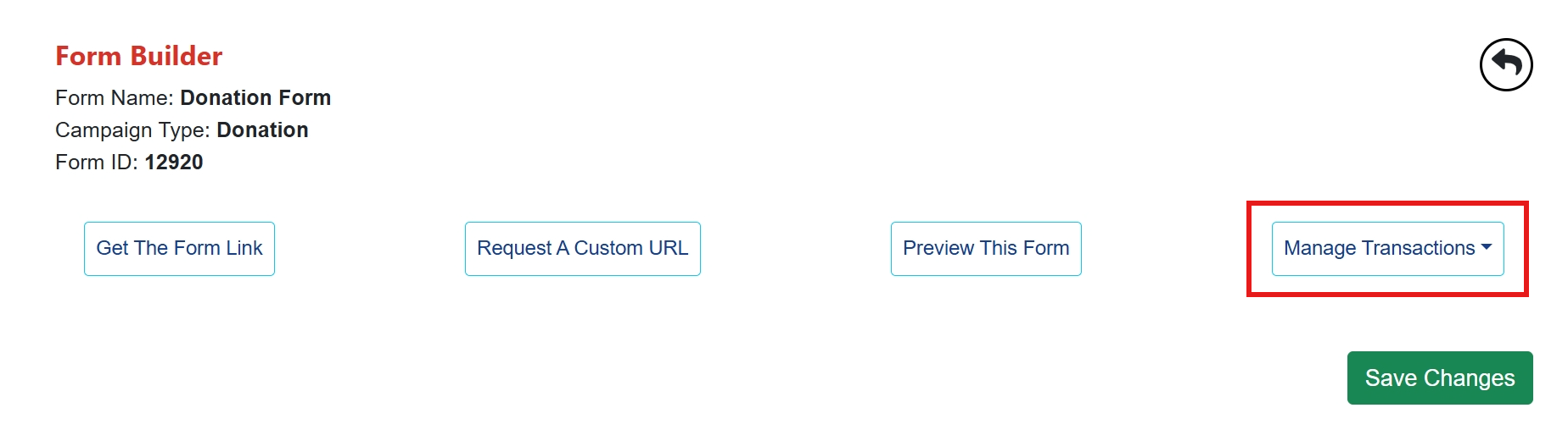 If your form has the progress bar enabled, you will see an additional button: Manage Transactions.